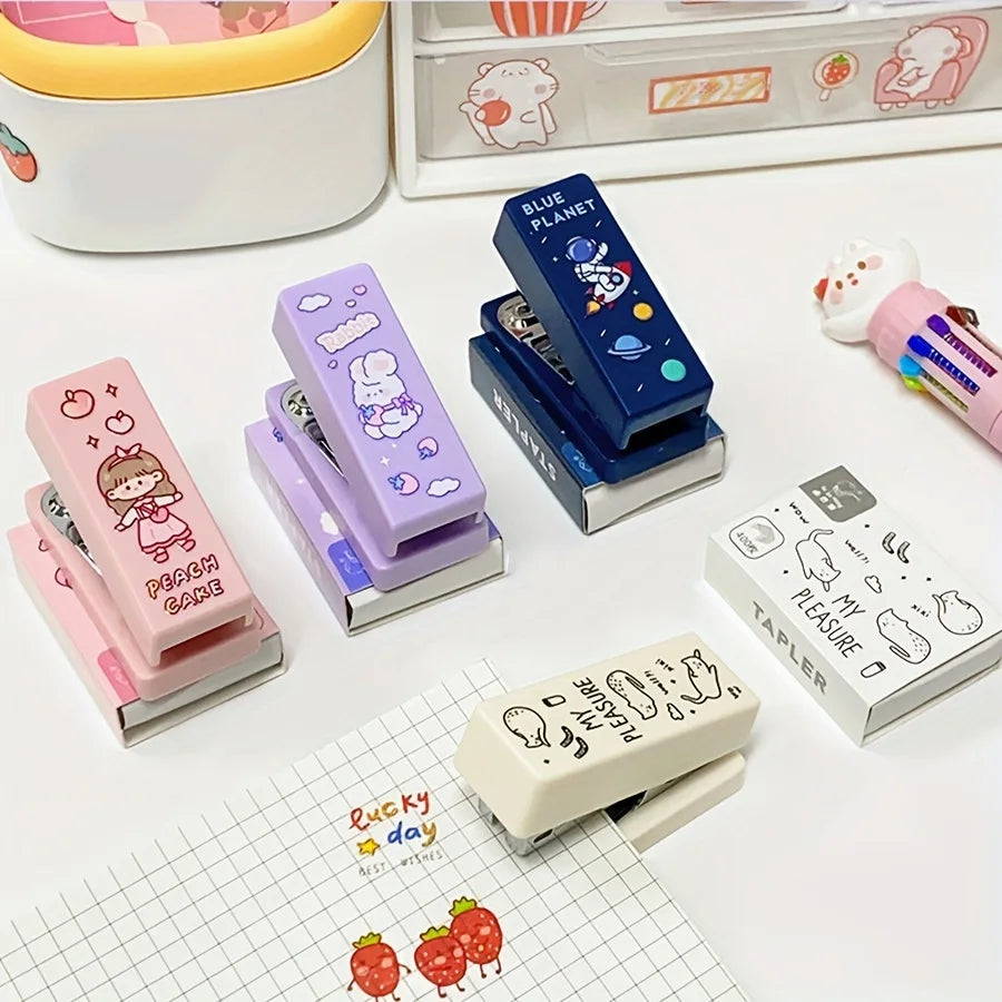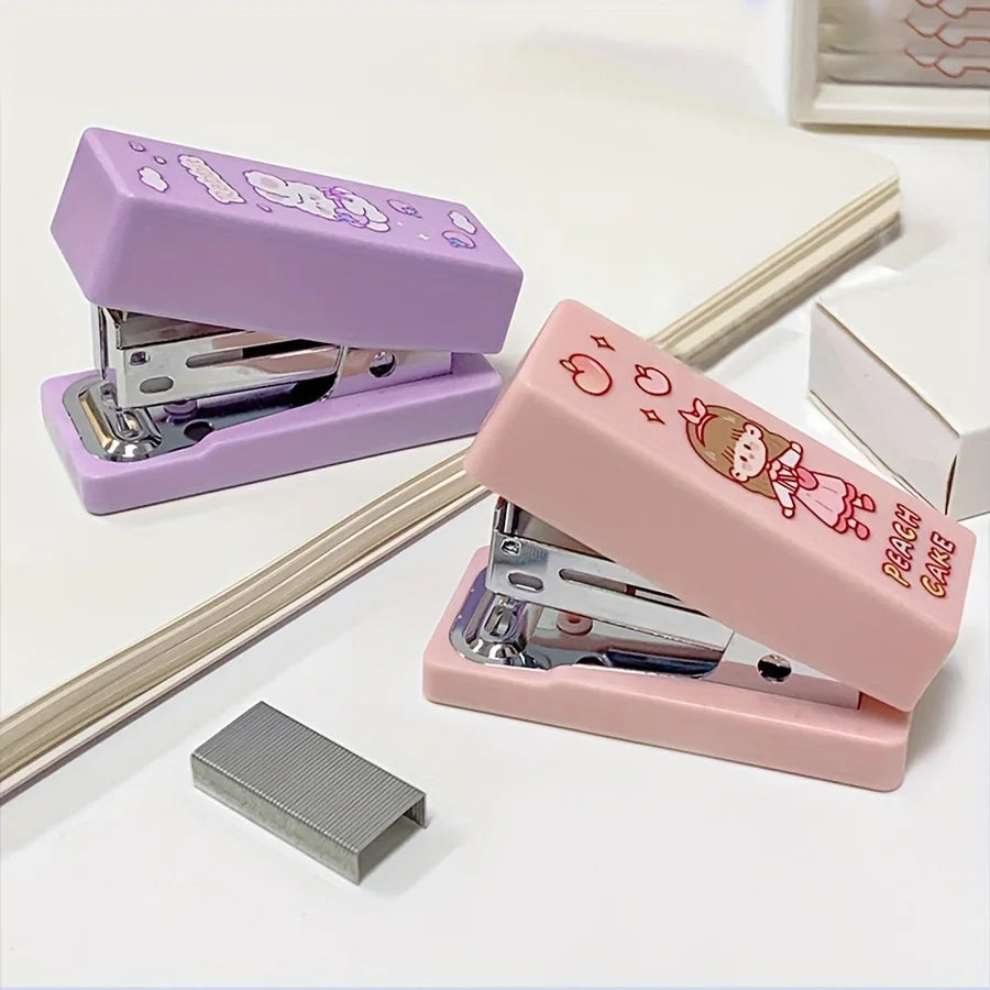 2pcs/set of Kawaii stapler with 400 staples, portable mini cute stapler, staples, student supplies, office accessories